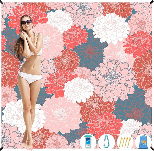 Beach Blanket Waterproof Sandproof 1-7 Adult Oversized 78 '' × 81 '' Lightweight Durable Compact Sand Free Beach Mat for Travel Camping Hiking Picnic Blanket Extra Large