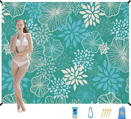 Beach Blanket Waterproof Sandproof 1-7 Adult Oversized 78 '' × 81 '' Lightweight Durable Compact Sand Free Beach Mat for Travel Camping Hiking Picnic Blanket