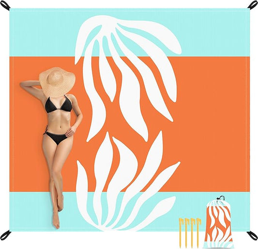Beach Blanket Waterproof Sandproof, 78”x 86” Large Sand Free Beach Mat with 4 Stakes & Portable Bag, Big Flodable Compact Outdoor Picnic Blanket