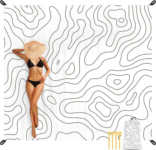 Beach Blanket Waterproof Sandproof, 78”x 86” Outdoor Beach Mat for 1-4 Adults, Quick Drying Foldable Sandfree Picnic Blanket with Stakes & Pockets for Travel, Camping, Hiking, Festival
