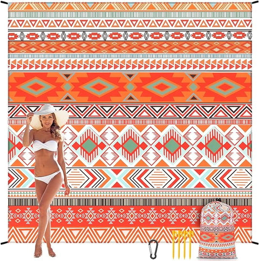 Beach Blanket Sandproof Extra Large Beach Mat Adults Waterproof Quick Drying Sand Free Mat Made by Premium Polyester with 4 Stakes & 4 Corner Pockets for Outdoor Travel Camping Hiking