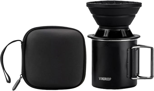 AGOGO Camping Pour Over Coffeemaker Set with Paper Filter Stainless Steel (Black, 600ml)
