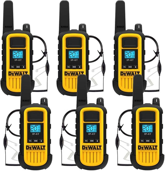 DEWALT DXFRS800 2 Watt Heavy Duty Walkie Talkies with Headsets - Waterproof, Shock Resistant, Long Range & Rechargeable Two-Way Radio with VOX (6 Pack)