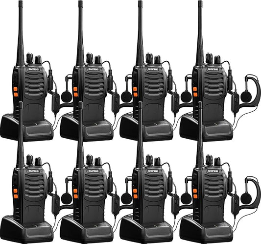 Baofeng Walkie Talkies for Adults Rechargeable bf-888s Two-Way Radios Long Range Interphone Handheld Communicator Professional UHF 8 Pack Walky Talky Set with Earpiece,Li-ion Battery and Charger