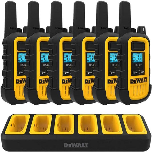 DEWALT DXFRS300 1 Watt Heavy Duty Walkie Talkies - Waterproof, Shock Resistant, Long Range & Rechargeable Two-Way Radio with VOX (6 Pack w/Gang Charger) (DXFRS300-BCH6)