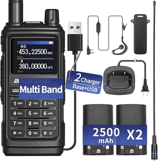 BAOFENG UV-5RM 10W Ham Radio, GMRS Handheld Radio Long Range with Tactical Antenna, Portable Two Way Walkie Talkie for Adults 5RM Multi-Band Radio with Air Duct Earpiece & 2500mAh Type-C Battery