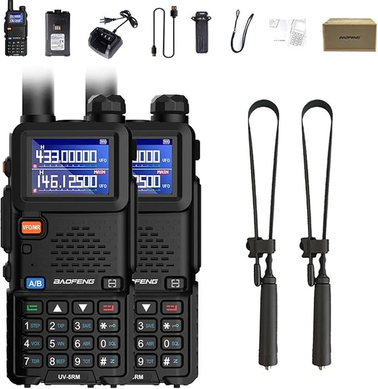 BAOFENG 2 Packs UV-5RM Two Way Radio Multi-Band Long Range Walkie Talkie NOAA USB-C Charging Upgrade of UV-5R Ham Radio Air Band 1.77in LCD Screen with 18.89in Tactical Antenna