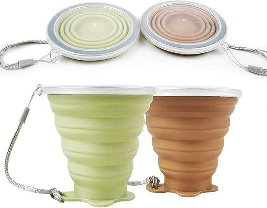 JBER Silicone Collapsible Travel Cup, Silicone Folding Camping Cup with Lids Expandable Drinking Cup for Outdoor Hiking Travel