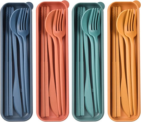 Travel Utensils with Case, Reusable Utensils Set with Case, Lunch Box Utensils Set Portable Utensils Set for Lunch Box School Picnic Travel Camping or Daily Use (4 Colors)