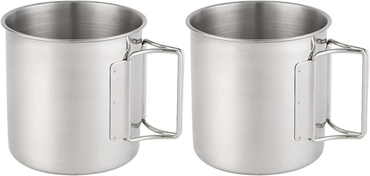 Stainless Steel Camping Mugs Outdoors Cup with Foldable Handle 2 Piece Set 660ml/22.3oz Great for Backpacking , Hiking, Hunting, Fishing and Survival Adventure