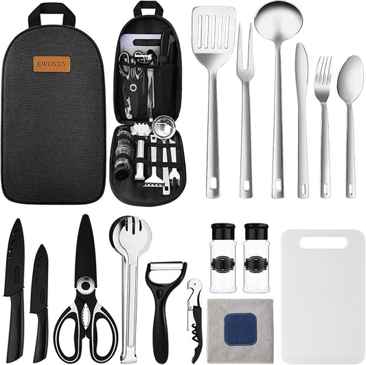 Camping Cooking Utensils Set- Camping Essentials Cookware Accessories Gear Must Haves Camper Tent Camp Kitchen Rv Gadgets Outdoor Stove Portable Picnic Gifts for Women BBQ Stuff