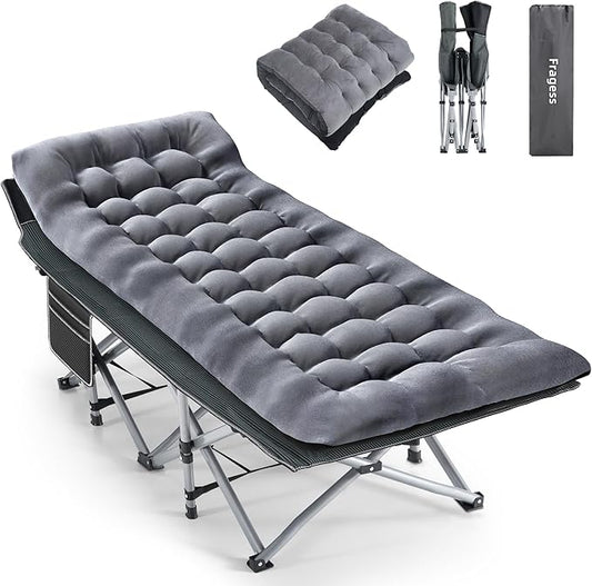 Camping Cot, Sleeping Cots for Adults, Portable Camping cots with Mattress, Pillow and Carry Bag, 1200D Double Layer Oxford, 600 LBS Weight Capacity Cots for Sleeping(Grey+Black)