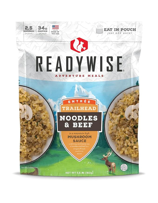 READYWISE - Adventure Meal, Noodles & Beef With Mushroom Sauce, 2 Servings, Pack of 1, Emergency Preparedness, Freeze Dried Food, MRE, Snack Pack or Emergency Food, Backpacking, Camping, Hiking, and,