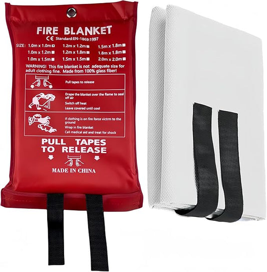 Fire Extinguisher Blanket - Heavy Duty Portable Fiberglass Emergency Blanket - Puts Out Grill & Grease Flames - Safe & Reusable Survival Fire Safety for Home, Kitchen, Car, Camping 1x1m