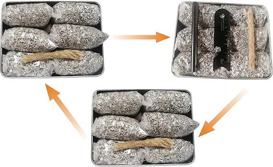 egreen Emergency Fire Starter Magnesium 6 Bags Ferro Rod Striker Wax Jute Rope for Hurricane Storm Outages Hiking Camping + Free Tin Container