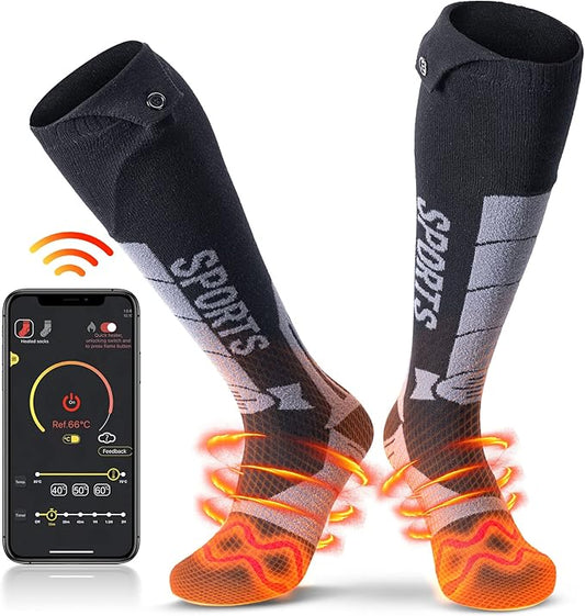 Heated Socks, Heated Socks for Men Women Rechargeable,5000 mAh Electric Heated Socks with APP Control,Heating Socks Washable Foot Warmer for Hiking Riding Camping Skiing Hunting Outdoor Activities
