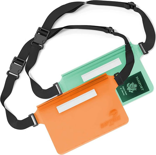 Waterproof Fanny Pack Pouch (2 Pack) for Men & Women Dry Bag Water Resistant with Adjustable Waist Strap - Protects Valuables at Water Sports (Sheer Green & Orange)
