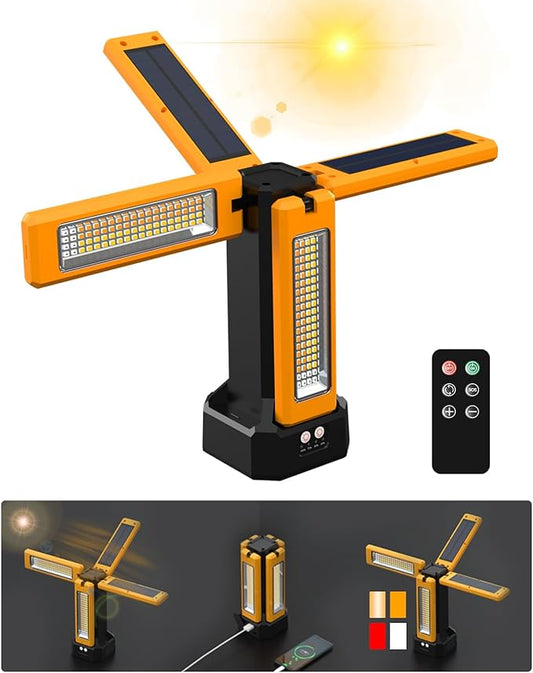 13200mAh Rechargeable Solar Work Light with Folding Stand Support and Portable Carrying Bag, 8000 Lumen Stepless Dimmable, 4 Lighting Modes, White/Warm/Warm White (Remote)