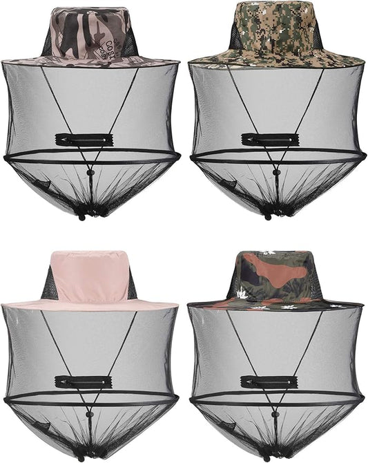4 Pieces Mosquito Head Mesh Mosquito Cap Net Hat Face Cover with Zipper Foldable Fly Protection Netting Hat for Fishing Hiking Gardening, 4 Colors