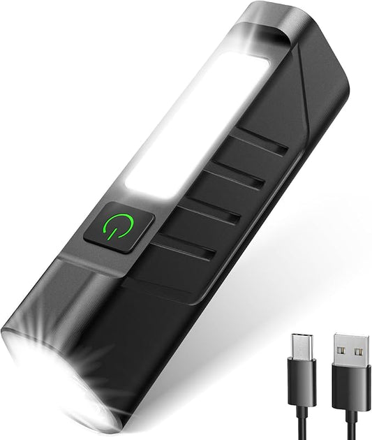 Rechargeable EDC Flashlight with Red Beam and White LED Combo, 900 Lumens Portable Pocket Lights, USB-C Charging, IPX4, Triple Sources for Outdoors Emergency Working (Black)