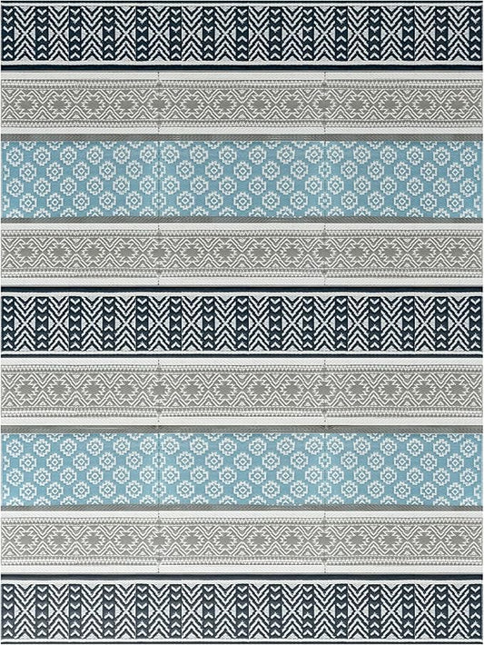 BalajeesUSA Recycled Outdoor Plastic Patio Rugs Clearance Waterproof RV Camper Rug Large Reversible mats 6'x9' Blue & White 20317