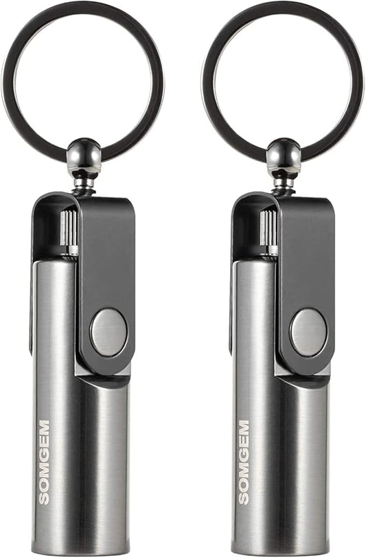SOMGEM Permanent Match Keychain 2 Pack, Kerosene Refillable, Waterproof Flint Fire Starter for Outdoor Camping Emergency Survival Gear