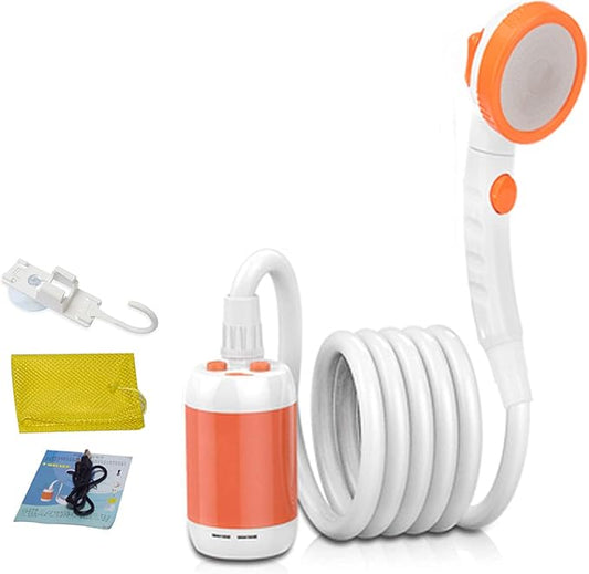 Outdoor Camping Shower, 7800mAh Outdoor Camp Shower Pump, Rechargeable Electric Shower Pump with Intelligent Digital Display, Powered by Rechargeable Battery for Camping, Hiking, Traveling, Orange