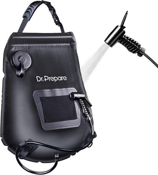 DR.PREPARE Camping Shower Bag, 15L Solar Camp Showers for Travelling Hiking Trip Beach w/On-Off Switchable Shower Head