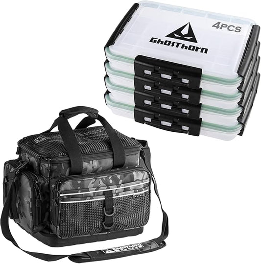 Ghosthorn Fishing Tackle Box, Waterproof 3600 and 3700 Tackle Trays, Plastic Tackle Box Organizer with Removable Dividers Storage Lure Box for Lures 1 and 4 Pack