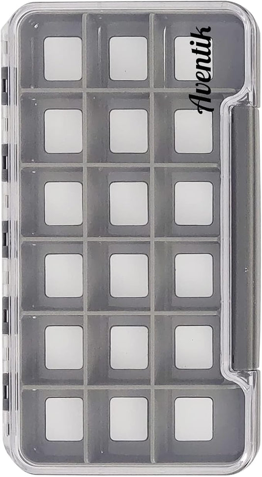 Waterproof Fly Fishing Boxes Supper Slim Fishing Tackle Storage Transparent Easy Grip Foams Multi Magnetic Compartments Fishing Tackle Storage Trags 7.36"X4.02"X0.63"(Grey-18C)
