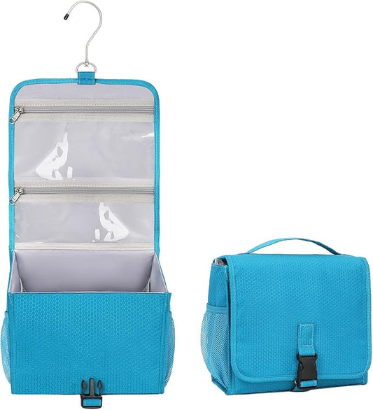 Relavel Hanging Toiletry Bag for Women and Men, Small Travel Bag for Girls Compact Size with Multiple Compartments Waterproof Travel Kit Wash Bag Makeup Storage Organizer Gym Shower Bag Blue