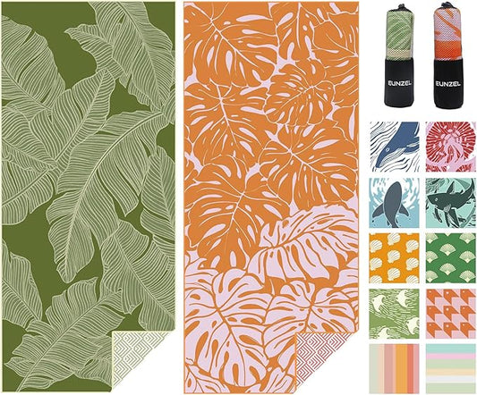 Eunzel 2 Pack Microfiber Beach Towel, Quick Dry Travel Towel Large Sand Free Towel for Beach, Camping, Swim Pool, Gym, Sports& Yoga 71"x32", Palm