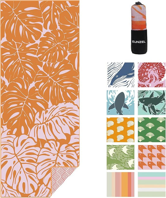Eunzel Microfiber Beach Towel, Quick Dry Travel Towel Large Sand Free Towel for Beach, Camping, Swim Pool, Gym, Sports& Yoga 71"x32", Palm Orange
