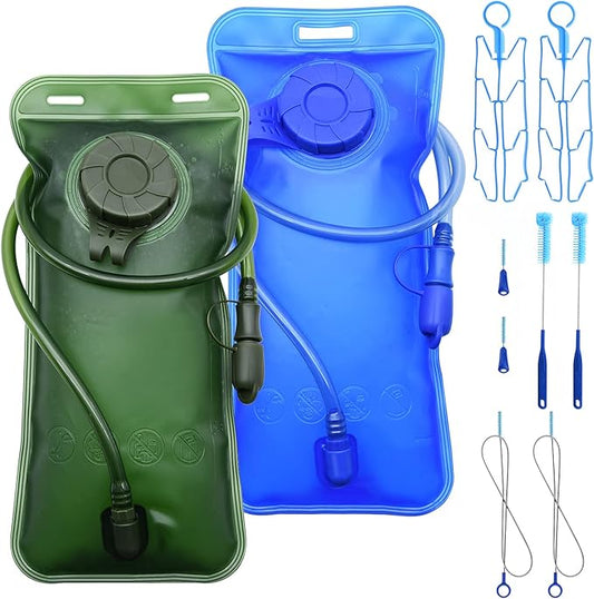 1.5/2/2.5/3L Hydration Bladder, 2pcs Water Bladder, Leakproof Water Reservoir for Hiking Biking Climbing Cycling Running Camping Backpack, Blue and Army Green