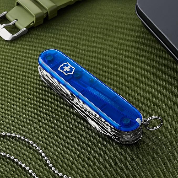 Victorinox Huntsman Swiss Army Knife, 15 Functions, Swiss Made Pocket Knife with Large Blade, Screwdriver, Scissors and Wood Saw - Sapphire