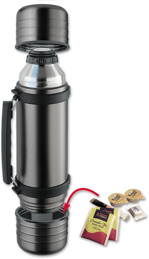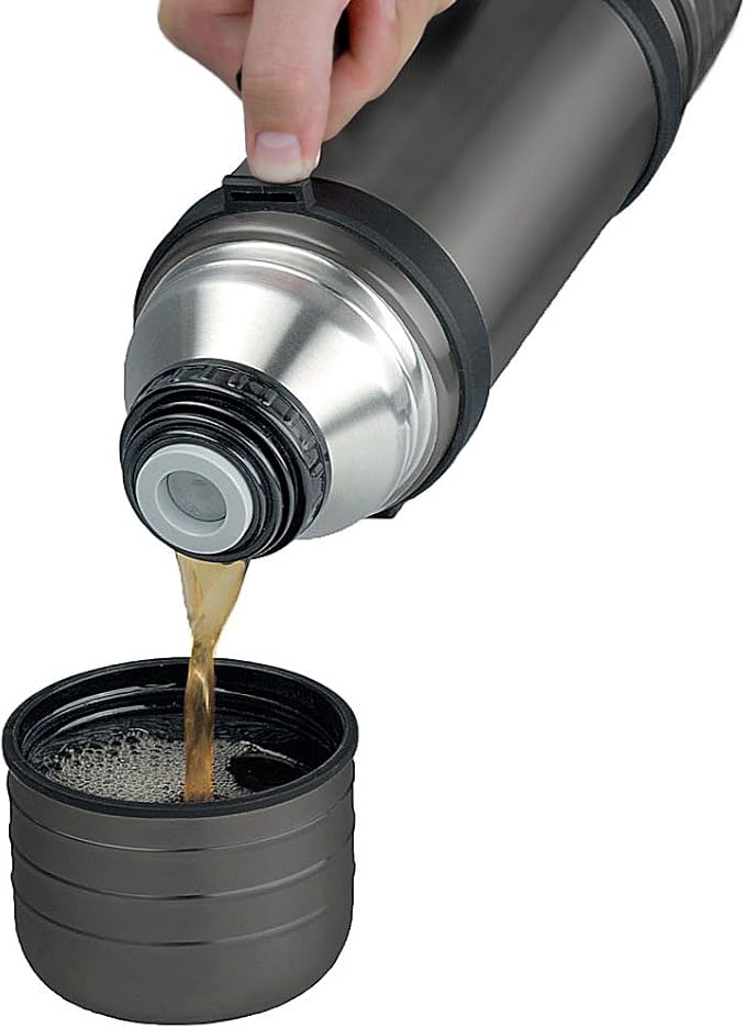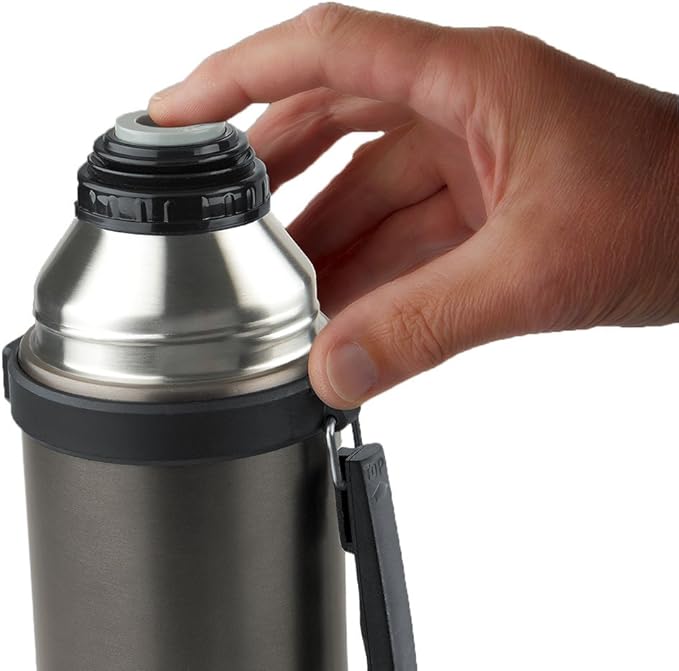 LiteXpress 1 Liter Titanium Grey Stainless Steel Removable Insulating Plastic Drinking Mug with Vacuum Flask and Quick System for One Hand Use
