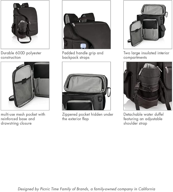 - Features two large insulated interior compartments, and non-slip, extra-comfortable backpack straps