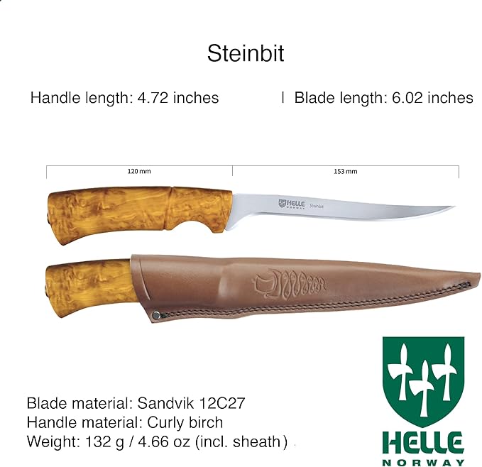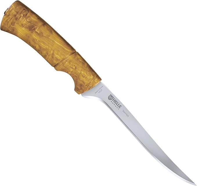 HELLE Knives - Steinbit - Fixed Blade - Fishing Knife - Birch Wood Handle - 12C27 Stainless Steel - Made in Norway