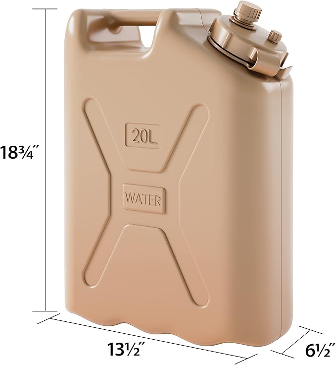 5 Gallon 20 Liter BPA Free Lightweight Portable Water Storage Container for Camping and Emergency Storage, Plastic Sand