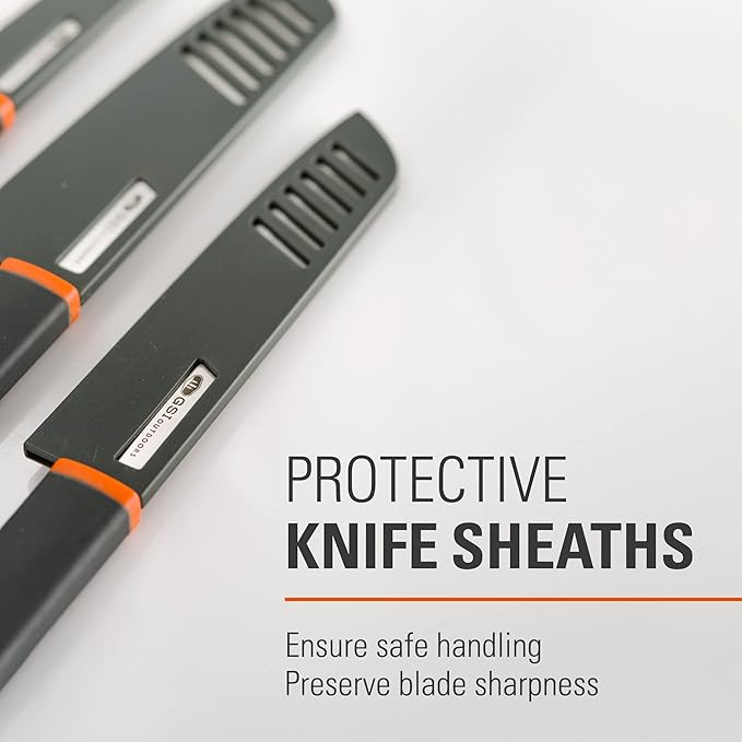 - Safe-handling with protective sheaths and sure-grip rubber handles; Sheaths also preserve blade sharpness, adding long-last durability