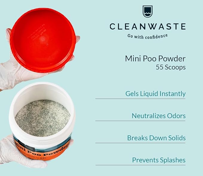 Cleanwaste Portable Mini Poo Powder Deodorizing Waste Treatment - 55 Scoops - Pee and Poop Gelling Powder for Camping, Travel, Emergencies