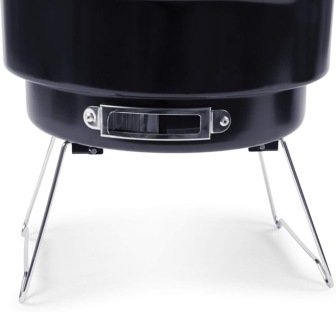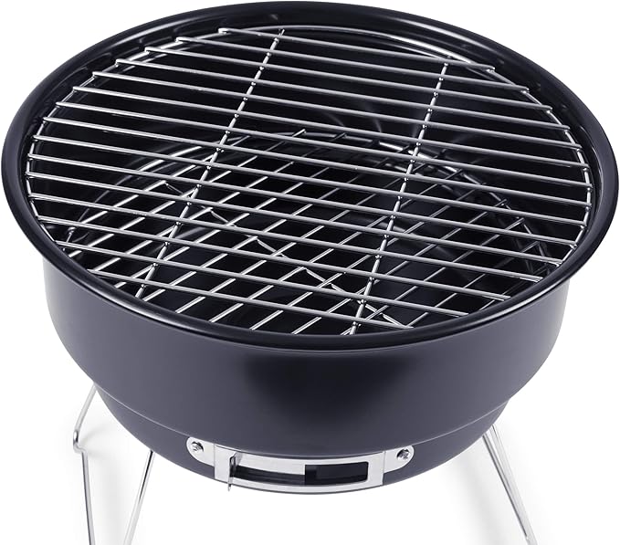 - Includes a 10-inch round portable charcoal BBQ grill with enameled fire bowl and chrome plated grates
