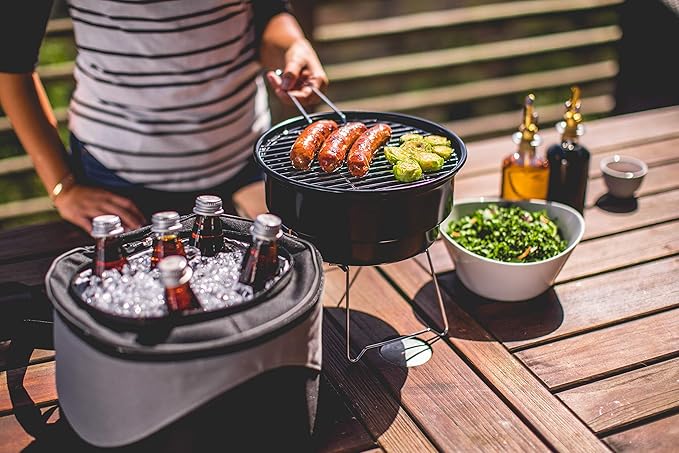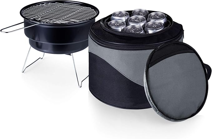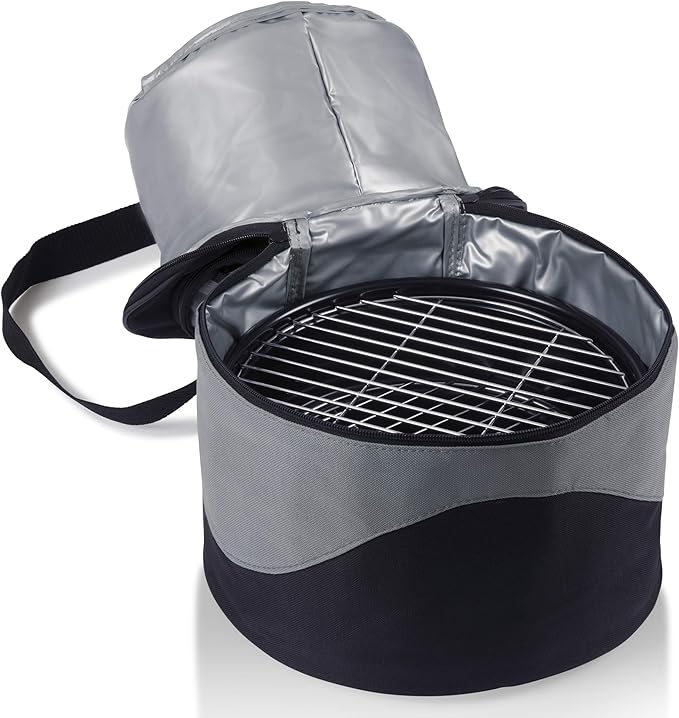 ONIVA - a Picnic Time brand Caliente Portable Charcoal Grill & Cooler Tote, Take Anywhere BBQ Grill with Cooler Bag, Grill for Outdoor Use, (Black with Gray Accents)