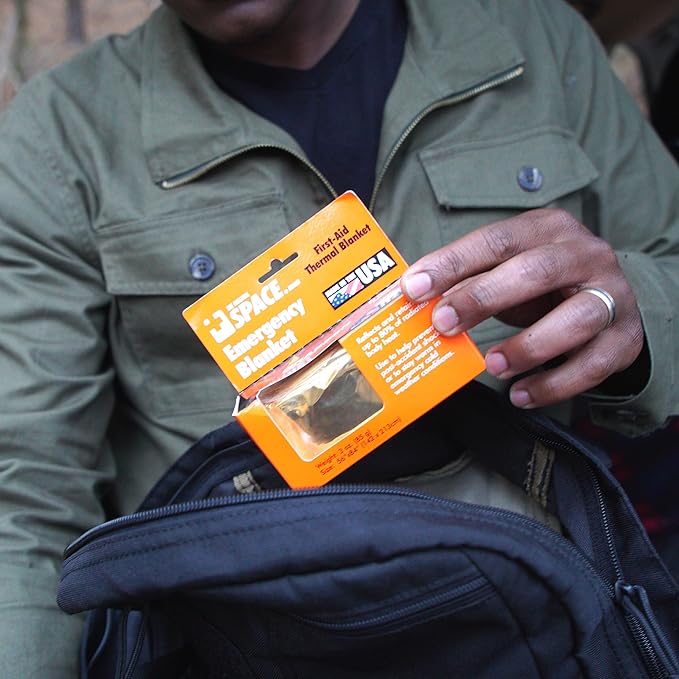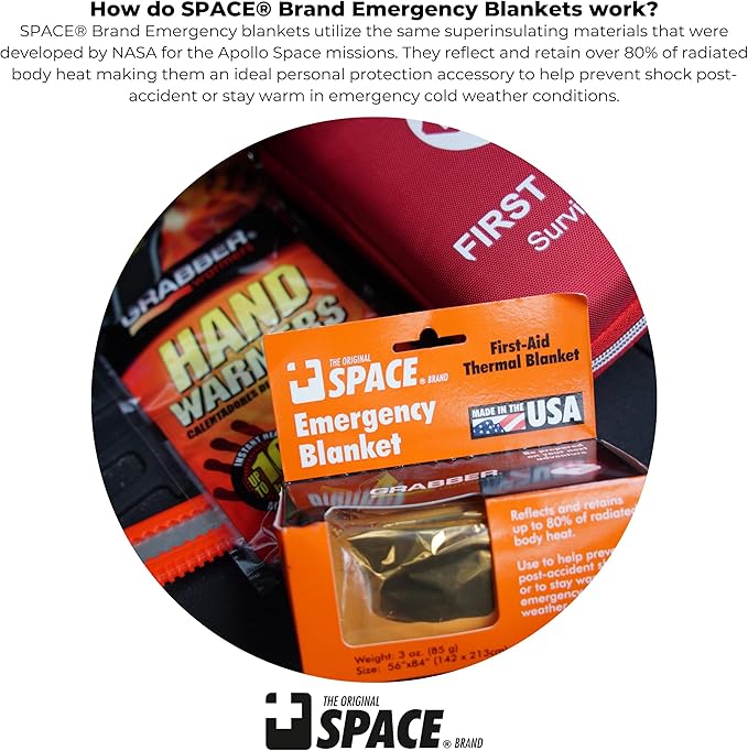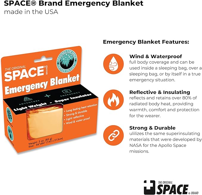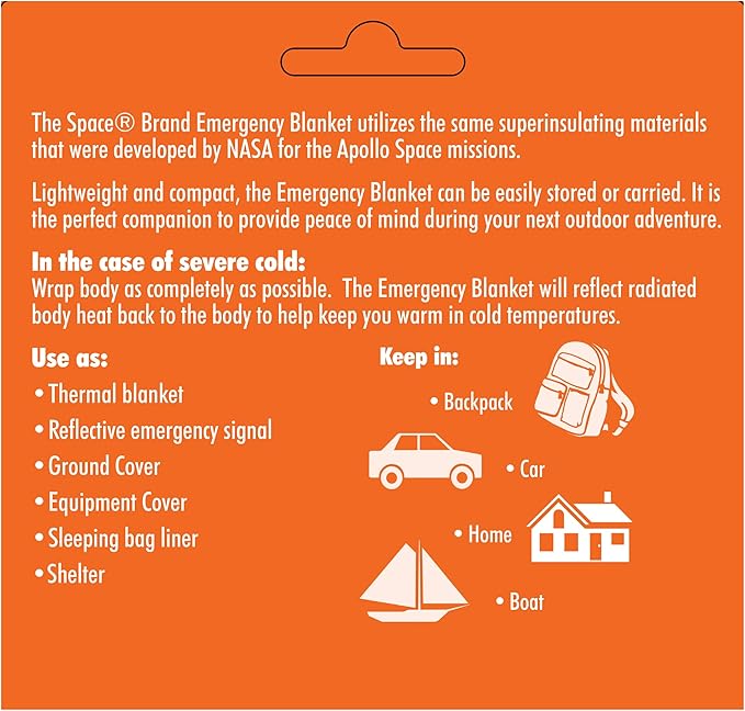Space Brand Emergency Blanket - Orange/Silver - Waterproof and Windproof Fi