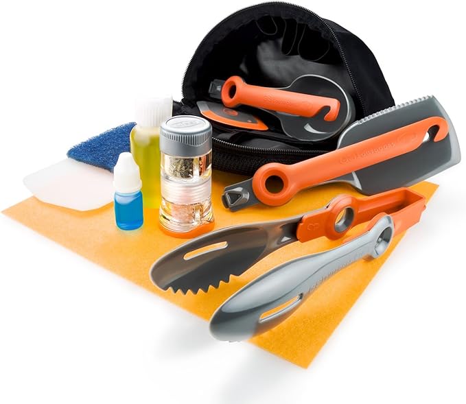 - King of the outdoor kitchen: The Crossover Kitchen Kit weighs just 9.6 ounces and features tools to cook and prep for any gourmet adventure.