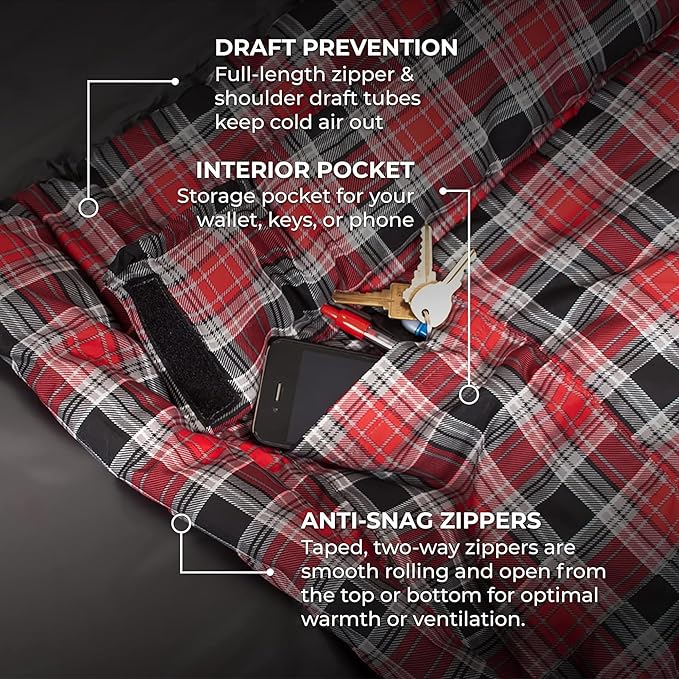 - STAY WARM: Rain or shine, you'll be warm and rested in this sleeping bag. Innovative fiber fill; double-layer construction and draft tubes work together to keep the cold out and the warmth in. Stay cozy on all your outdoor adventures