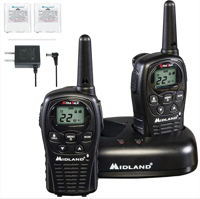 Midland - LXT500VP3, 22 Channel FRS Walkie Talkies with Channel Scan - Extended Range Two Way Radios, Silent Operation, Batteries Included (Pair Pack) (Black)