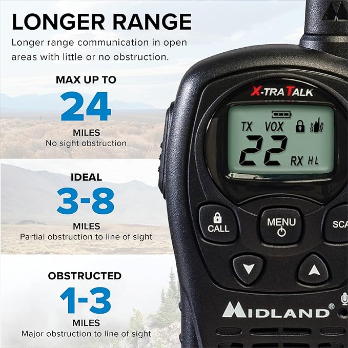 - 24-MILE RANGE - Longer range communication in open areas with little or no obstruction