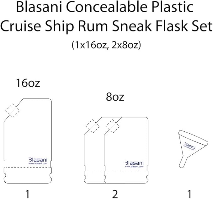 Concealable Plastic Cruise Ship Rum Sneak Flask Kit Set (1x16oz, 2x8oz)