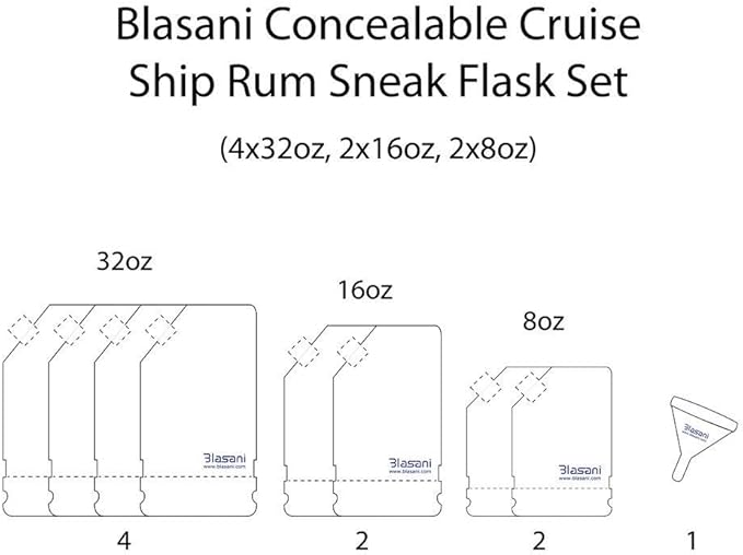 Concealable Reusable Cruise Pouches | Sneak Flask | Leak Proof BPA Free | Travel, Outdoors, Events, Kit Set (4x32oz + 2x16oz + 2x8oz)